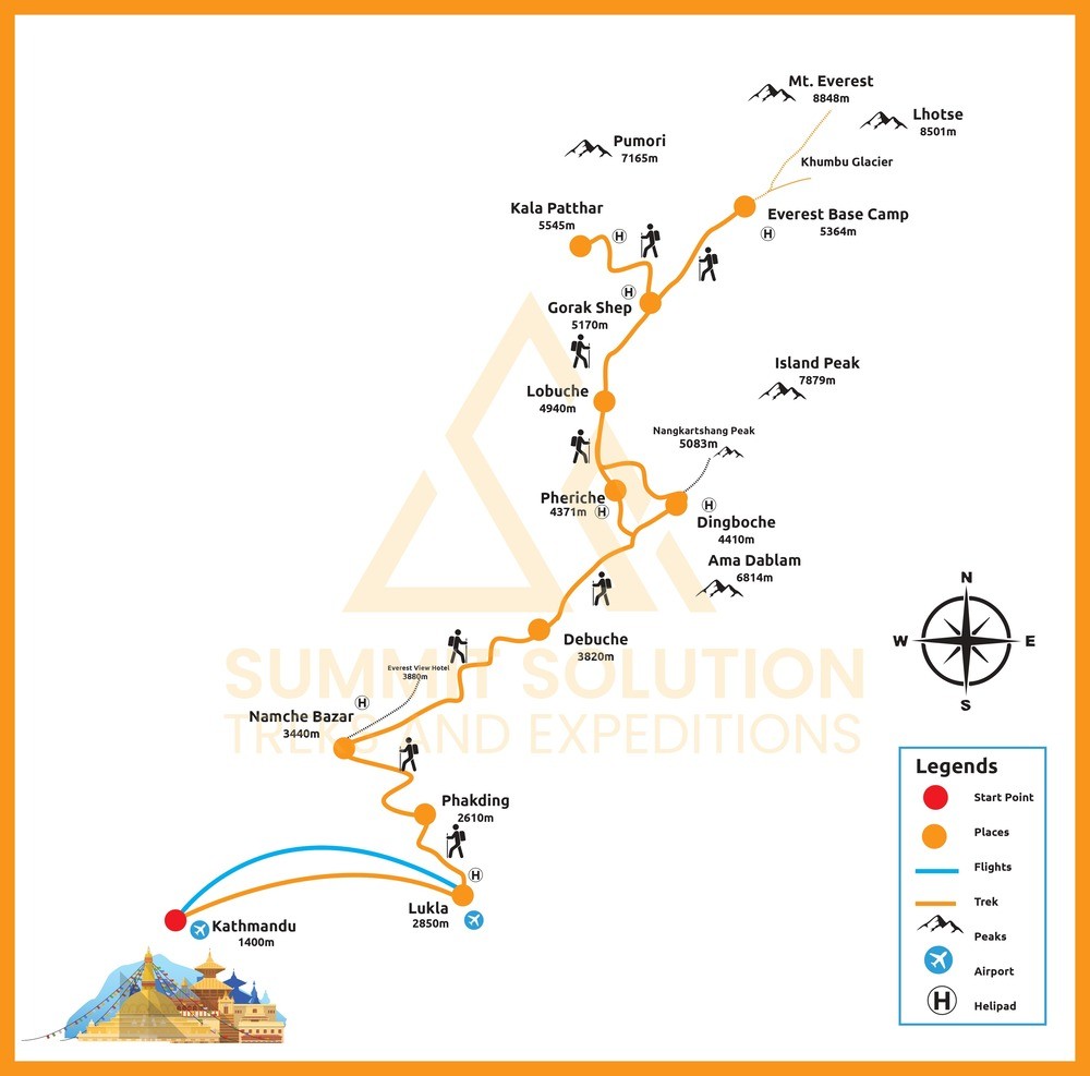 The Everest Base Camp Trek is one of the world’s most iconic Himalayan journeys, guiding trekkers through the heart of the Khumbu region to the foot of Mount Everest at 5,364 meters. This unforgettable adventure blends stunning mountain scenery, centuries-old Sherpa culture, legendary trails, and unforgettable viewpoints like Kala Patthar. With Summit Solution Treks and Expedition, you experience the Everest region with expert guidance, cultural warmth, and a carefully planned itinerary designed for safety, acclimatization, and breathtaking Himalayan views. From the vibrant streets of Namche Bazaar to the spiritual tranquility of Tengboche Monastery, every step of this trek tells a story of tradition, adventure, and the human spirit’s longing for the mountains.