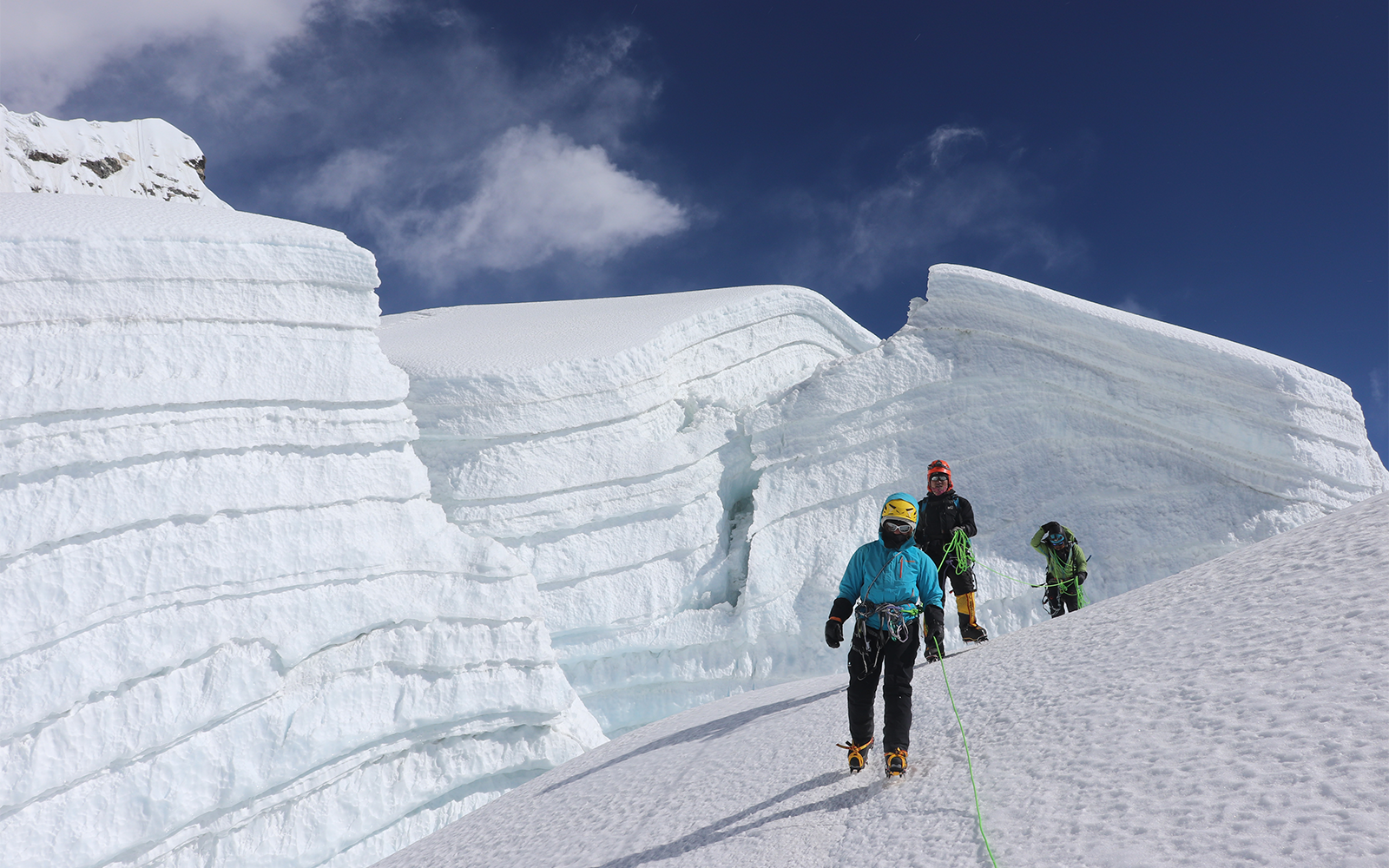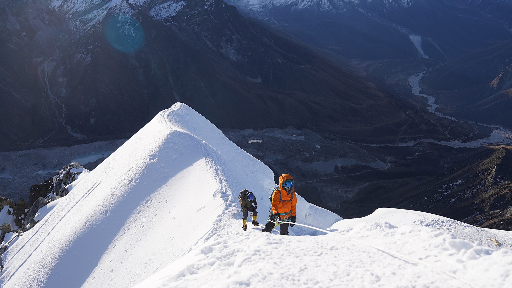 The expedition begins with a scenic flight to Lukla, followed by trekking through the legendary Everest Base Camp trail. Climbers pass through iconic Sherpa villages such as Namche Bazaar, Tengboche, and Dingboche, allowing gradual acclimatization while exploring the rich culture and stunning landscapes of the Khumbu region. Base Camp at 5,100 meters in the Imja Valley near Chhukung serves as the starting point for acclimatization and technical training, including essential rope skills under the guidance of experienced Sherpas.