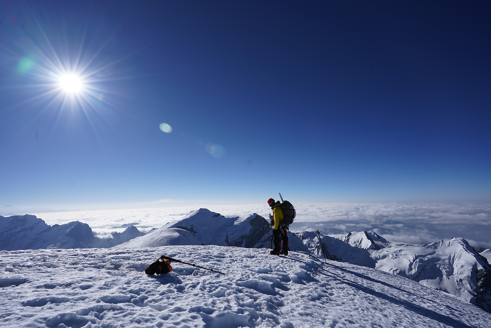 High Camp at 5,800 meters, located on a rocky outcrop above the glacier, serves as an important acclimatization stop and launch point for the summit push. Summit day begins in the early hours, with climbers traversing glacier terrain, ascending gradually steep snow slopes, and finally reaching the summit ridge. From the top, the unparalleled panoramic view of Everest, Lhotse, Makalu, Cho Oyu, Kanchenjunga, and surrounding peaks creates an unforgettable Himalayan experience that defines the essence of high-altitude adventure.